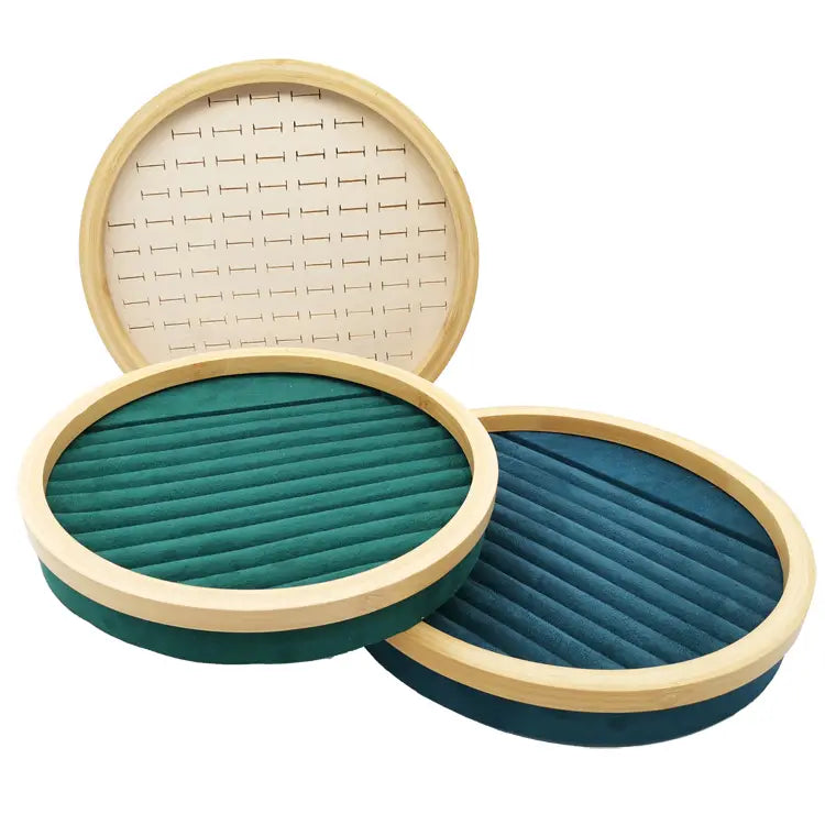 Revolutionize your jewelry organization with our 1pc Jewelry Plate Display Rack, a perfect blend of functionality and style. Made from high-quality solid wood, this round flannel storage box is designed to showcase your treasured rings and stud earrings beautifully.